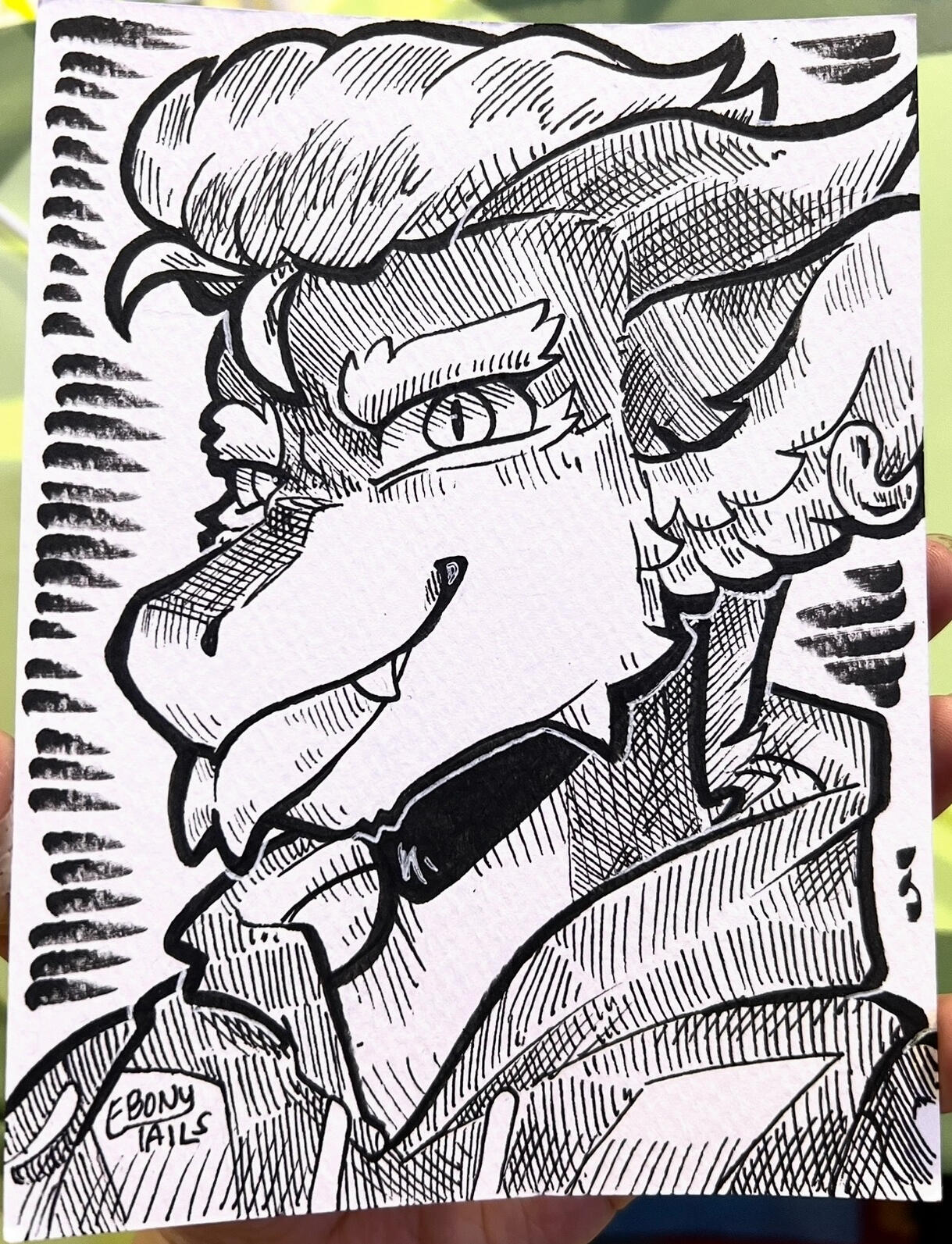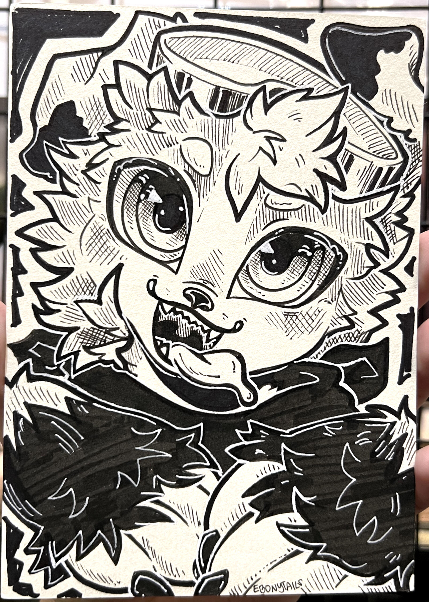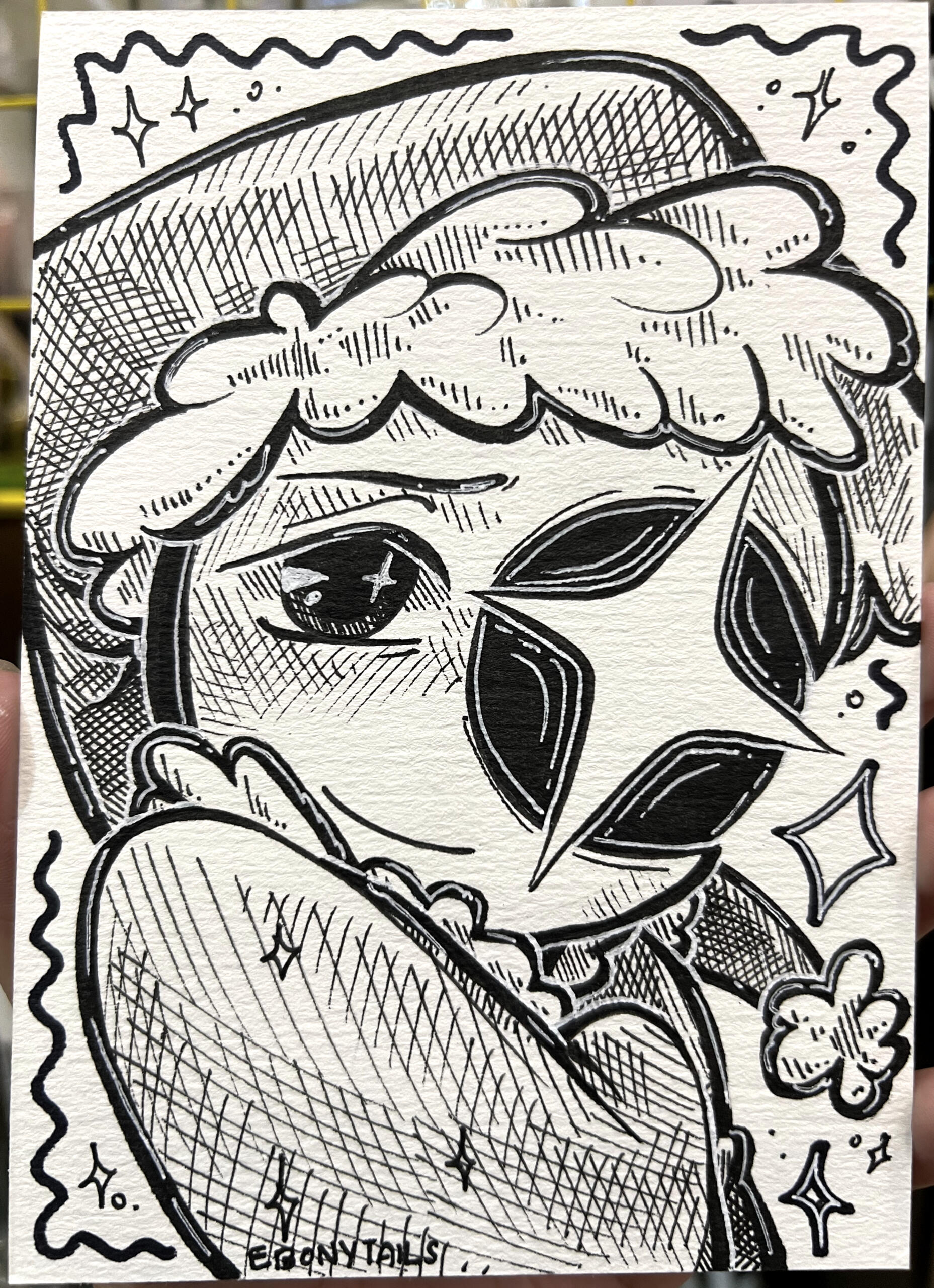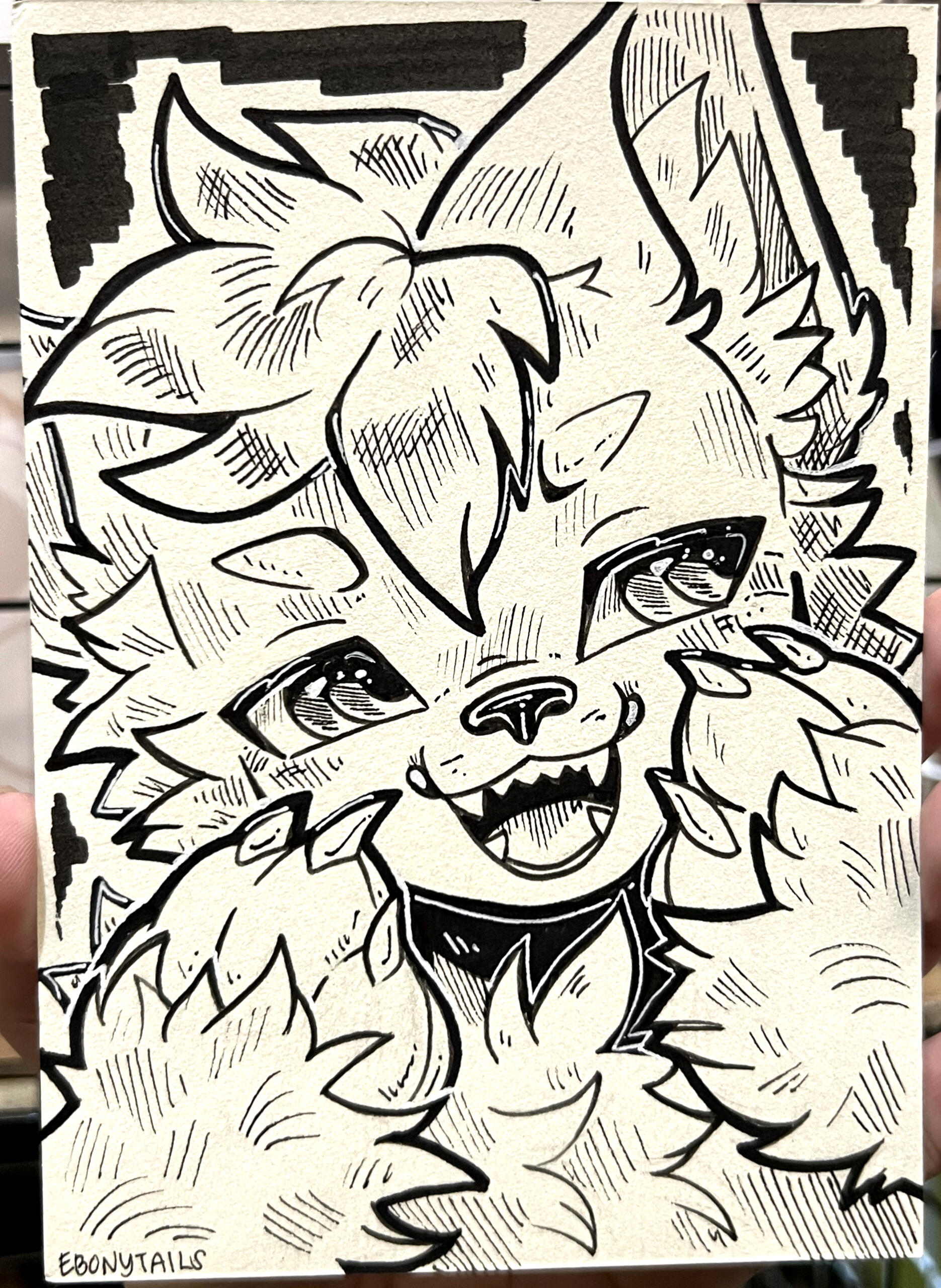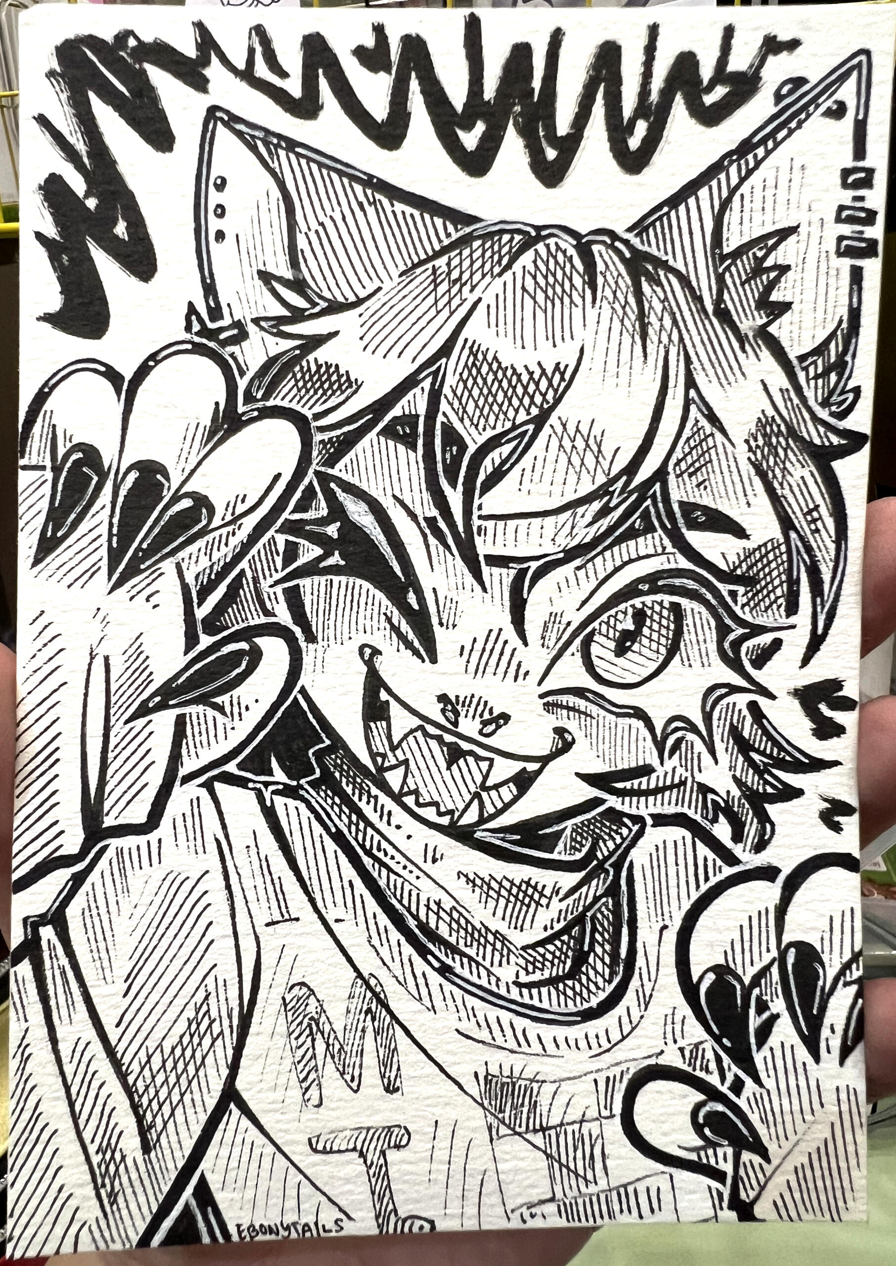 During events, I offer traditional art commissions! These are small pieces on A6 watercolor paper cards where I either draw in only black and white ink, or paint with watercolor using a grayscale palette!I tend to close slots very early WITHIN 3 hours of an event starting. Hence, I offer EARLY BIRD slots!