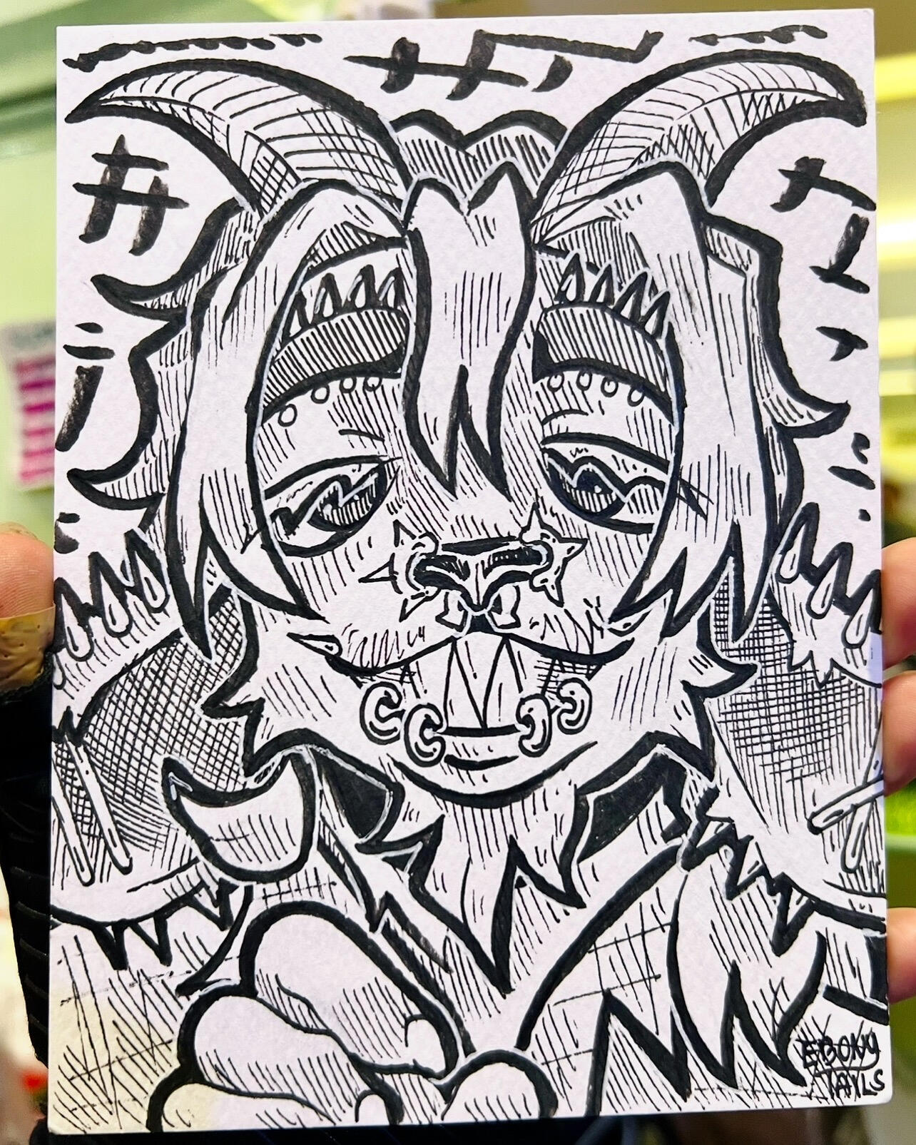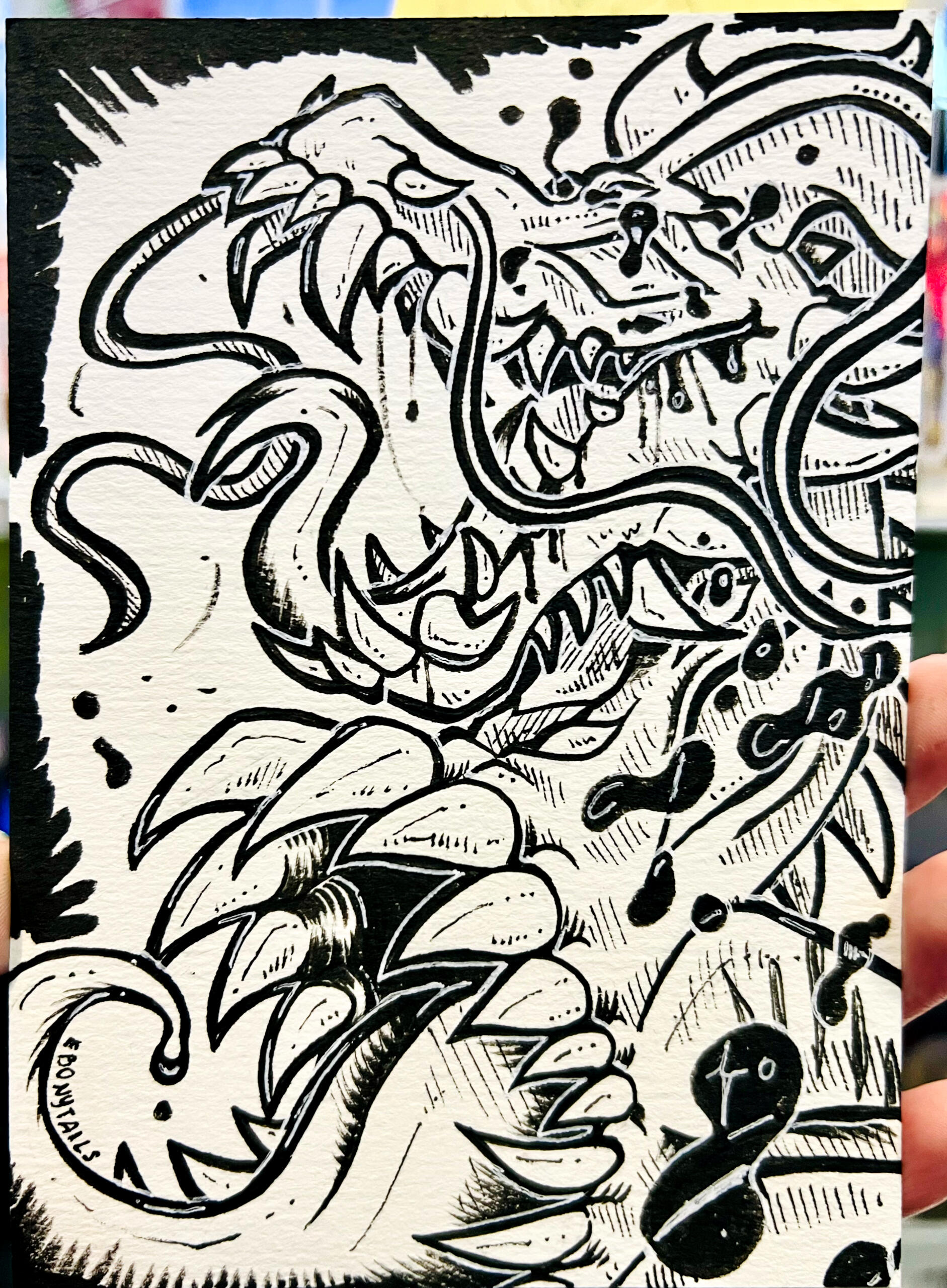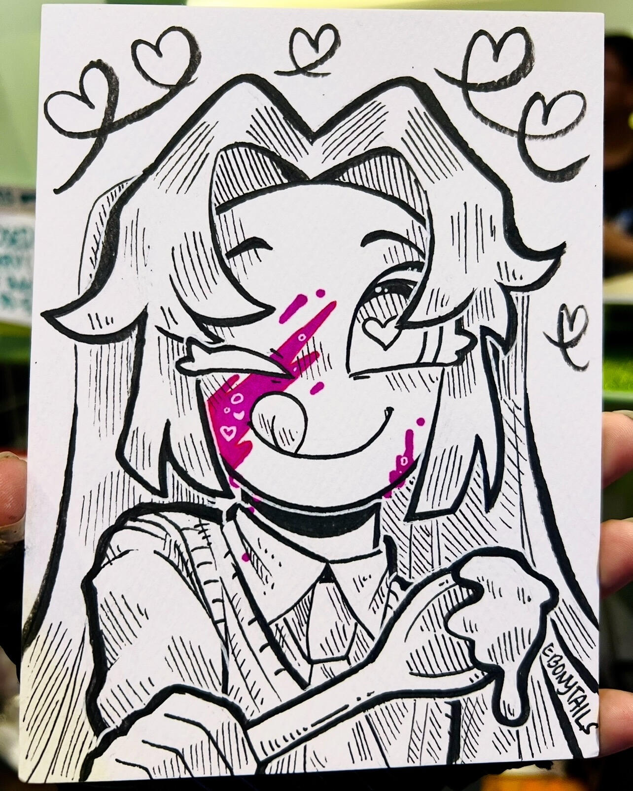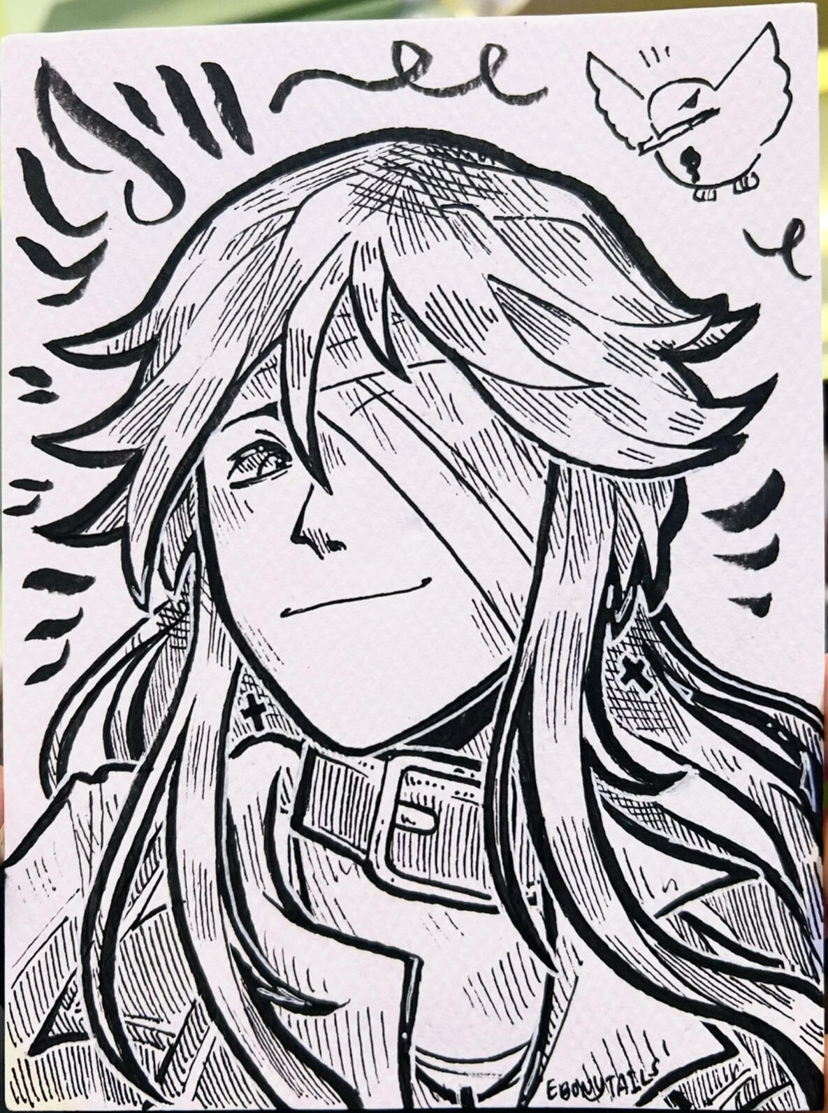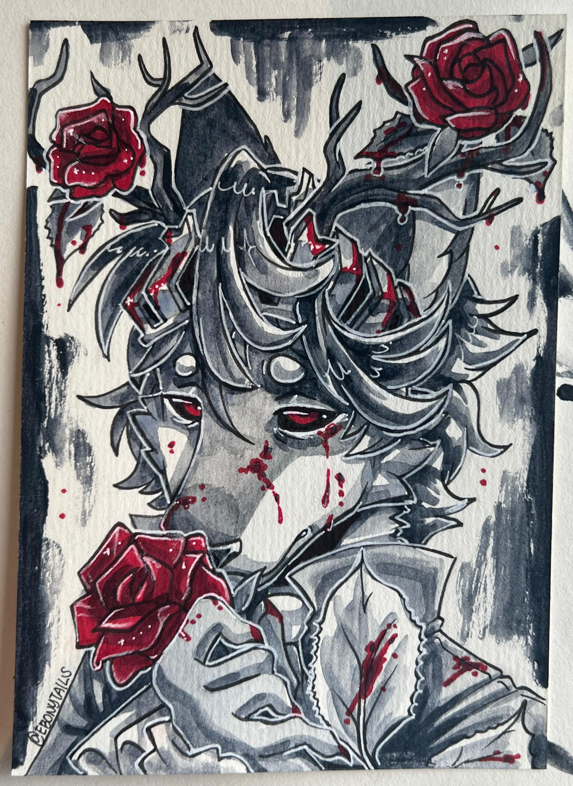 During events, I offer traditional art commissions! These are small pieces on A6 watercolor paper cards where I either draw in only black and white ink, or paint with watercolor using a grayscale palette!I tend to close slots very early WITHIN 3 hours of an event starting. Hence, I offer EARLY BIRD slots!
